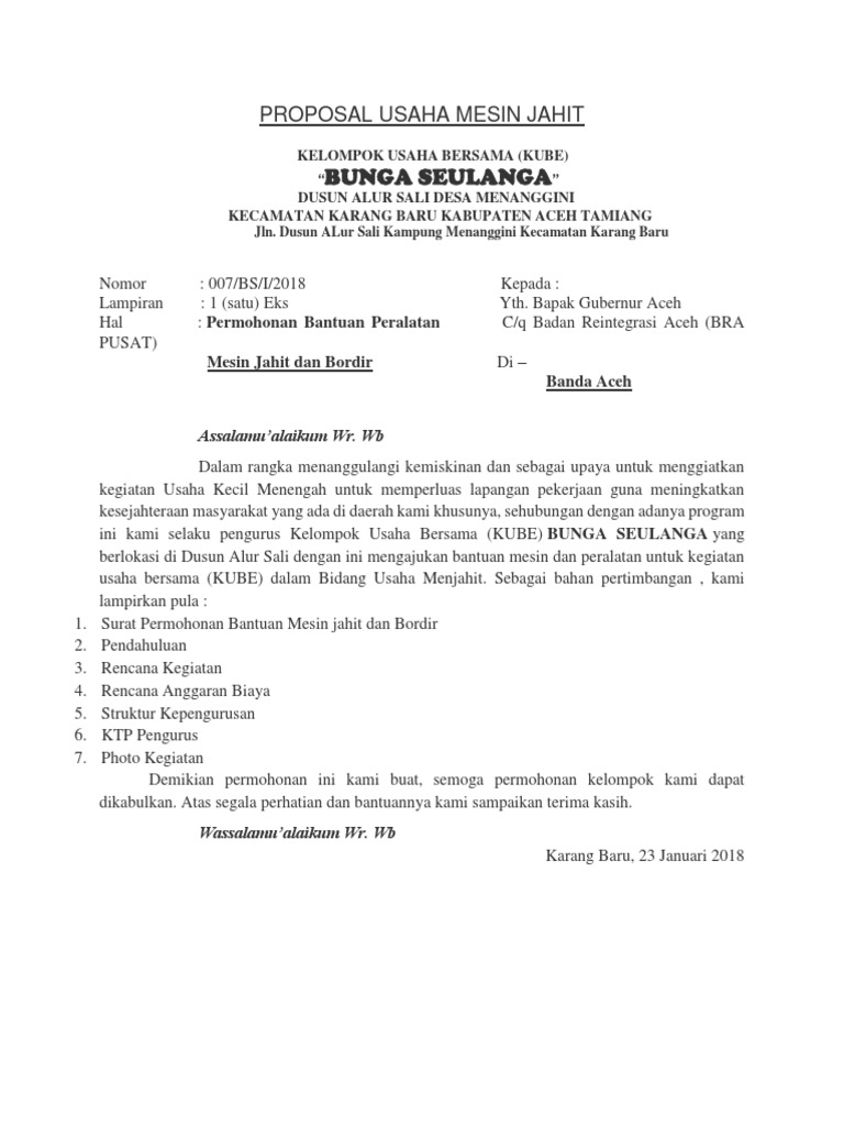 Proposal Permohonan Bantuan Mesin Jahit Pdf